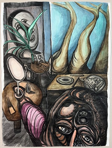 Watercolor, Ink, and Flashe on Paper
